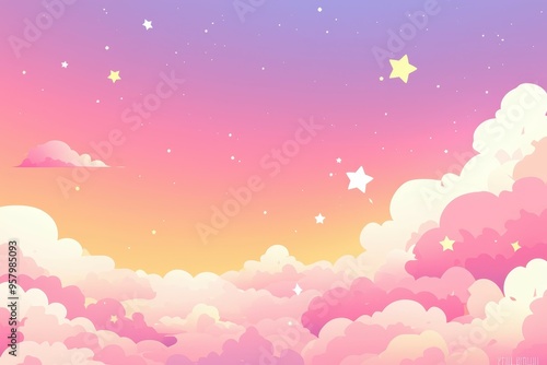 A whimsical sky filled with pastel clouds and twinkling stars, creating a dreamy atmosphere perfect for imagination and creativity.