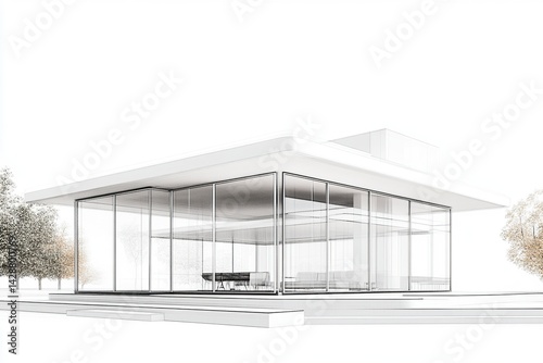A white and gray wireframe of a modern architectural house with a transparent background, on a white background. Hyper-realistic, high-resolution, high-definition, high-quality.