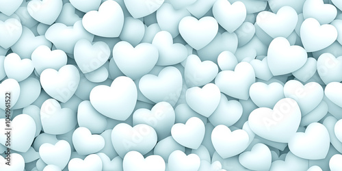 A white background with many white hearts scattered across it. The hearts are all different sizes and are placed in various positions. Scene is one of love and affection