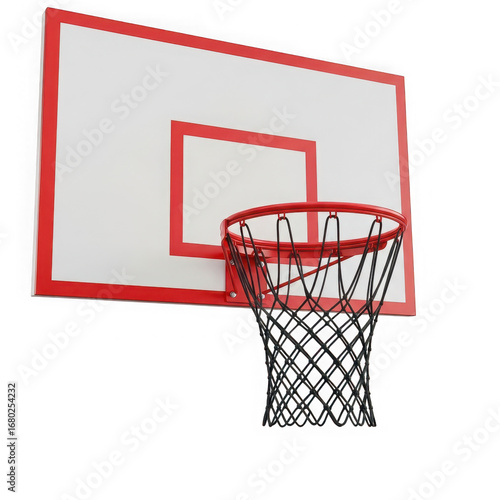 A white basketball backboard and hoop isolated on transparent background, ready for a game