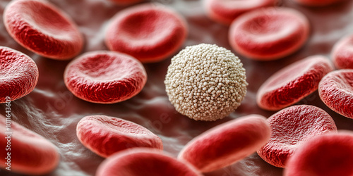 A white blood cell with a granular surface surrounded by many smooth red blood cells.