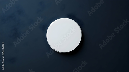 A white circular object placed on a dark navy background, creating a sharp contrast and enhancing the object's clean, modern appearance.