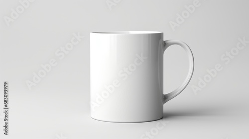 A white coffee mug sitting on top of a table, mug mockup, copy-space.