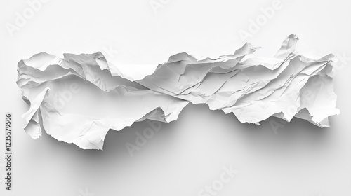 A white crumpled piece of paper rests against a flat white surface its textured form casting a soft shadow