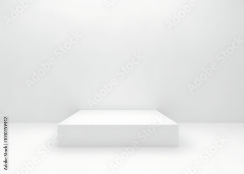 A white cube is a rectangular platform with minimal features and clean lines in modern art designs.