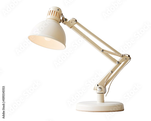 a white desk lamp with a light on