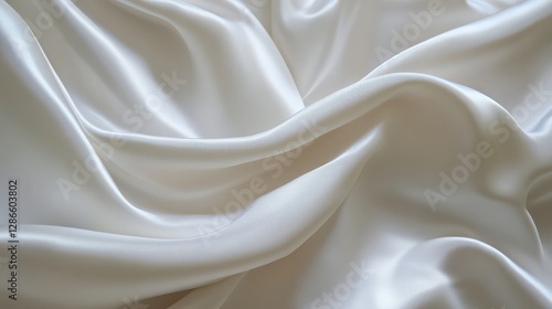 A white fabric with streaks of shine and smooth texture, gently folded to create soft, sleek lines across its surface.