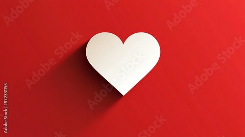 A white heart shape on a red background with a long shadow.