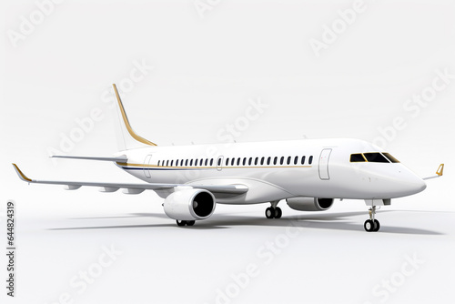 A white plane soars through the air against a pristine white backdrop, portrayed in a minimalistic yet hyper-realistic style. Generative AI.