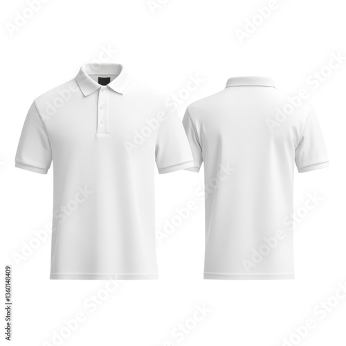 A White polo shirt with short sleeves, front and back view, isolated on transparency background. shirt features classic collar and button placket, ideal for casual or semi formal wear