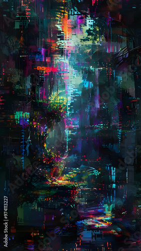 A winding, glowing vine leads to a mystical cave filled with shimmering crystals and ancient runes.