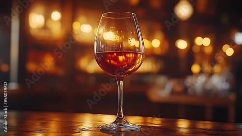A wine glass being swirled by a hand, the deep red wine reflecting the soft ambient light, with a blurred tasting room in the background, capturing the sophistication and elegance of wine tasting,