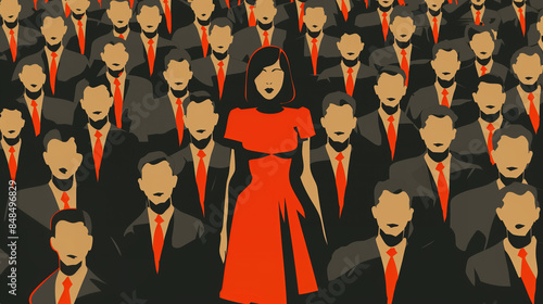 A woman in a man's world. An image of a woman trying to succeed in professional competition with men.