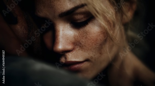 A woman in a moment of emotional vulnerability seeking comfort and support