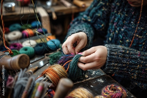 a woman is knitting a sweater with a yarn ball, Learn a new craft skill
