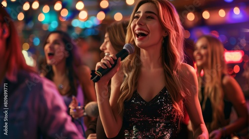 A Woman Singing at Karaoke Night