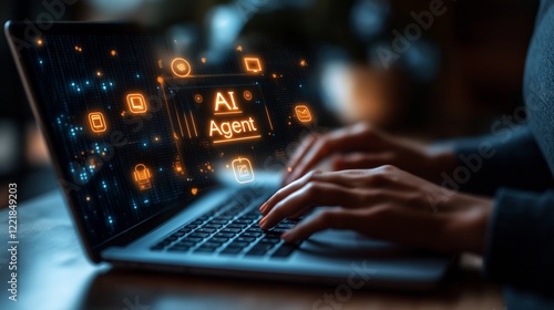 A woman working with an AI agent at a laptop computer symbolizing agentic digital autonomy using teamwork and human collaboration in the workforce
