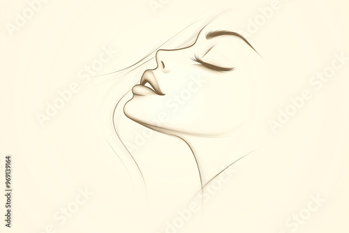 A woman's face is drawn in a sketch. The sketch is in a light brown color. The woman's face is drawn with a very soft and gentle expression