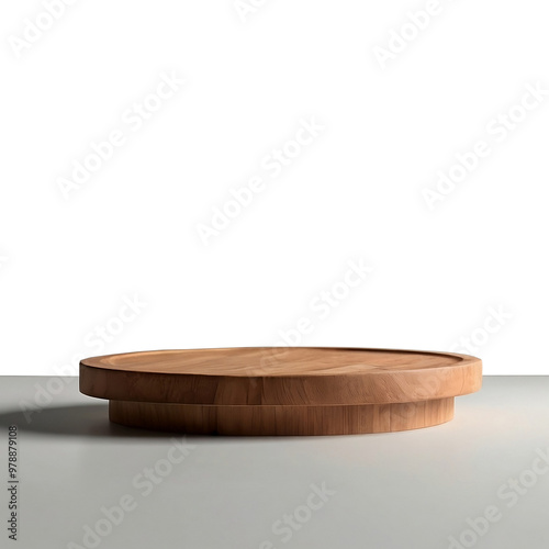 A wooden plate or podium in front of transparent background