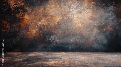 A wooden table with a dark, textured background and a warm, golden light shining through.
