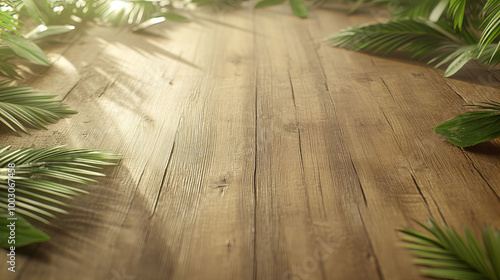 A wooden table with a leafy border
