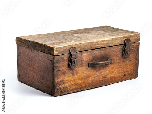 A wooden tool box, isolated on a clean white background, with smooth edges and no shadow.