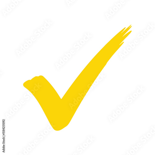 A yellow brush stroke forms a check mark indicating approval, isolated on white background
