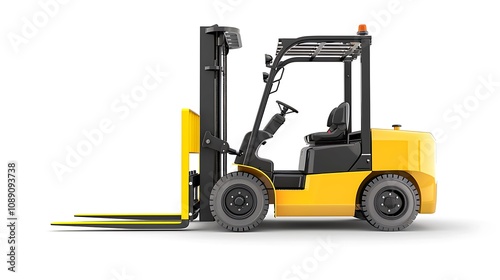A yellow forklift designed for lifting and transporting heavy materials in industrial settings.