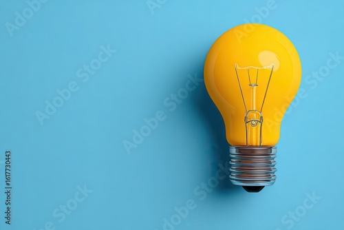 A yellow light bulb against a blue backdrop with a simple, clean studio look. Illustrates ideas, inspiration, problem-solving, or creative concepts in business.