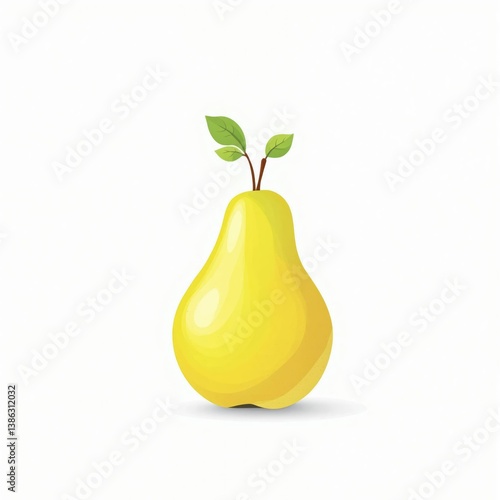 A yellow pear with a leaf on top