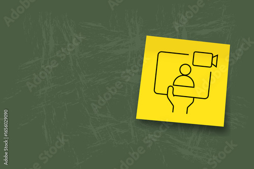 a yellow square card with a black minimalist icon of a smartphone displaying a user profile symbol. It represents mobile accounts, digital identity, or user login. user. log in. sing in. account. icon