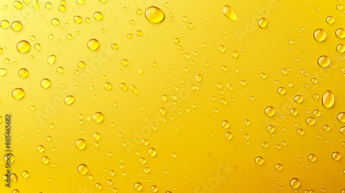 A yellow surface with many small drops of water on it. The drops are scattered all over the surface, creating a sense of movement and energy