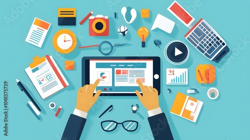 A young entrepreneur working on website design from a tablet