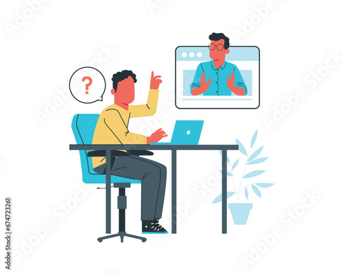 a young man communicates via video call with a friend. Vector illustration in flat style