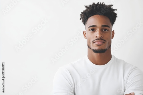 A young man dressed casually in a white shirt, stands confidently with a neutral background, expressing a sense of simplicity, modernity, and self-assurance.