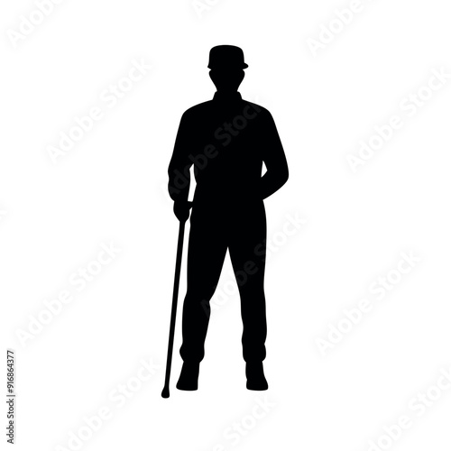 a young man stand with cane vector art illustration, solid color vector, isolated white background