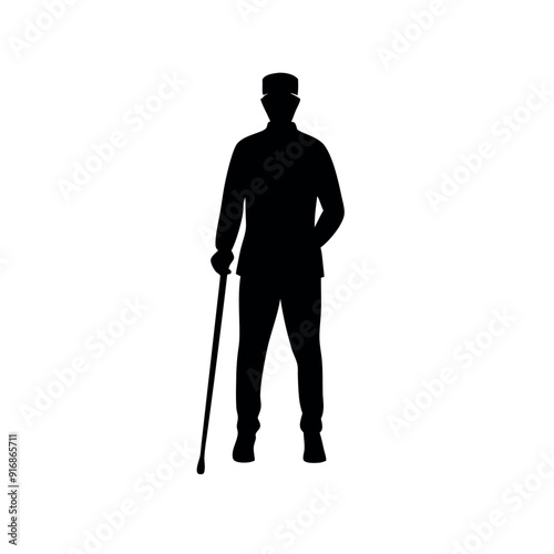 a young man stand with cane vector art illustration, solid color vector, isolated white background