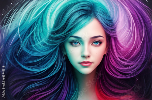 A young woman with a trouble mind but a calm face.a confused mind is represented by her hair.This means showing the society that she is fine even when her mind is disturbed