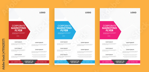 A4 marketing flyer design template. New flier design bundle page collection. Vector editable yellow, red, and white color handout, poster template. Print marketing vertical leaflet, blank paper.