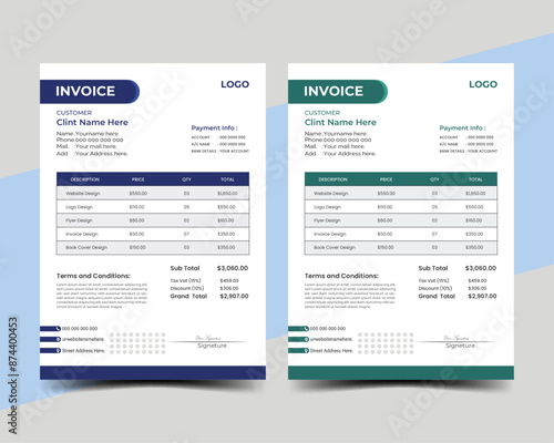 A4 Size Invoice design . A Modern Minimal Invoice Layout and Business invoice form template. Invoicing quotes, money bills or price invoices and payment agreement design templates.