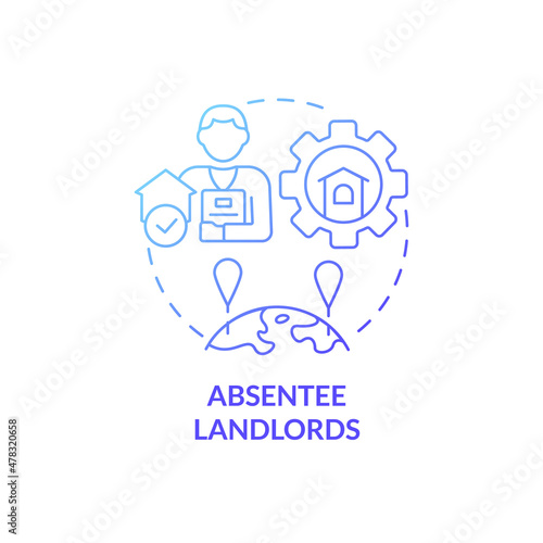 Absentee landlords blue gradient concept icon. Property manager client service abstract idea thin line illustration. Isolated outline drawing. Roboto-Medium, Myriad Pro-Bold fonts used