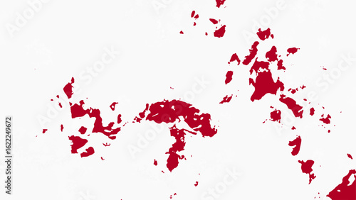 Abstract bold red and white high-contrast pattern. Aggressive paint splatters or expressive ink blots dispersed across the canvas. Motion, energy, and raw emotion, with jagged irregular white shapes