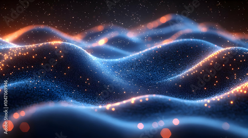 Abstract 3D Background with Blue and Orange Glowing Particles