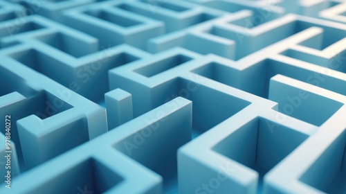 Abstract 3D Blue Labyrinth Pattern with Depth and Perspective
