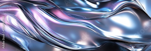 Abstract 3D design showcasing fluid metallic textures with vibrant colors and smooth reflections under soft lighting conditions. Generative AI