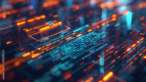 Abstract 3D Digital Data Background with Blue and Orange Lights