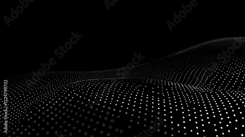 Abstract 3D Dotted Wave Forms a Dynamic Surface on a Black Background.