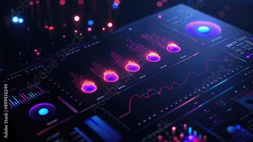 Abstract 3D financial dashboard with interactive charts and glowing data points