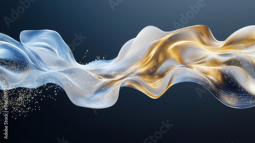 Abstract 3D Flowing Liquid-Like Wave Textures in Gold, White, and Royal Blue Gradient background wallpaper