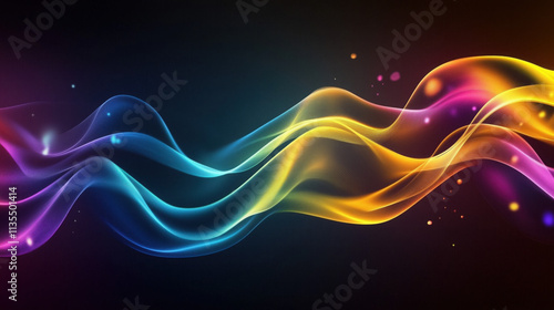 Abstract 3D Flowing Liquid-Like Wave Textures in Yellow, Blue, and Purple Gradient